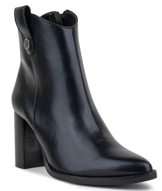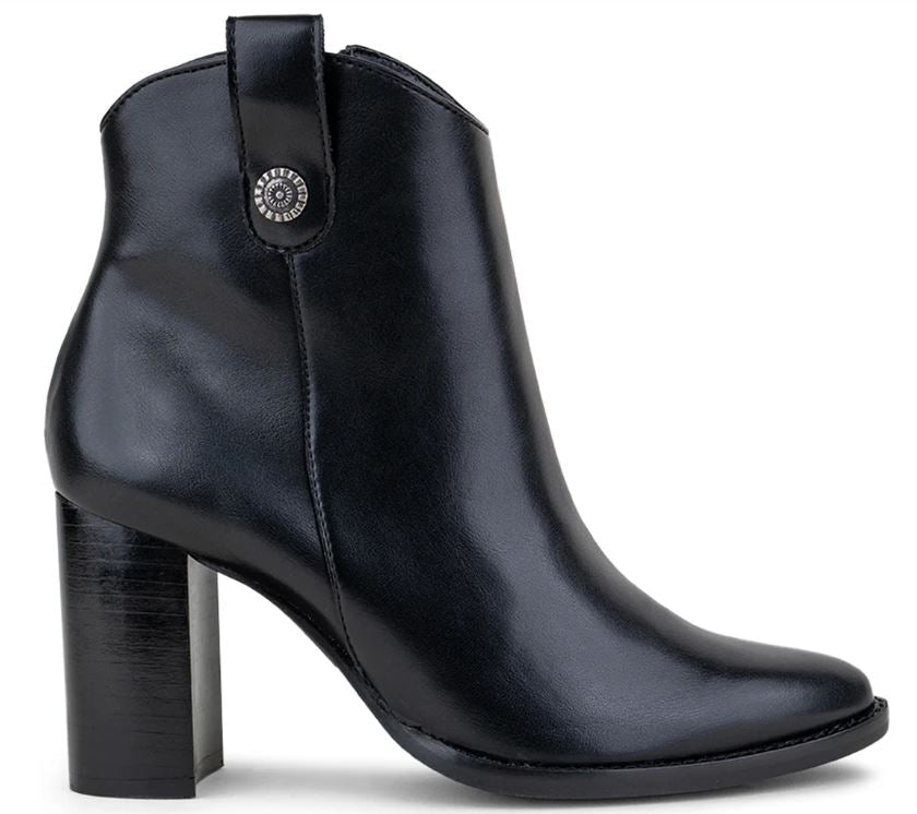 Botín Vaquero Negro, Con Cierre Interno Y Botón En Tobillo.